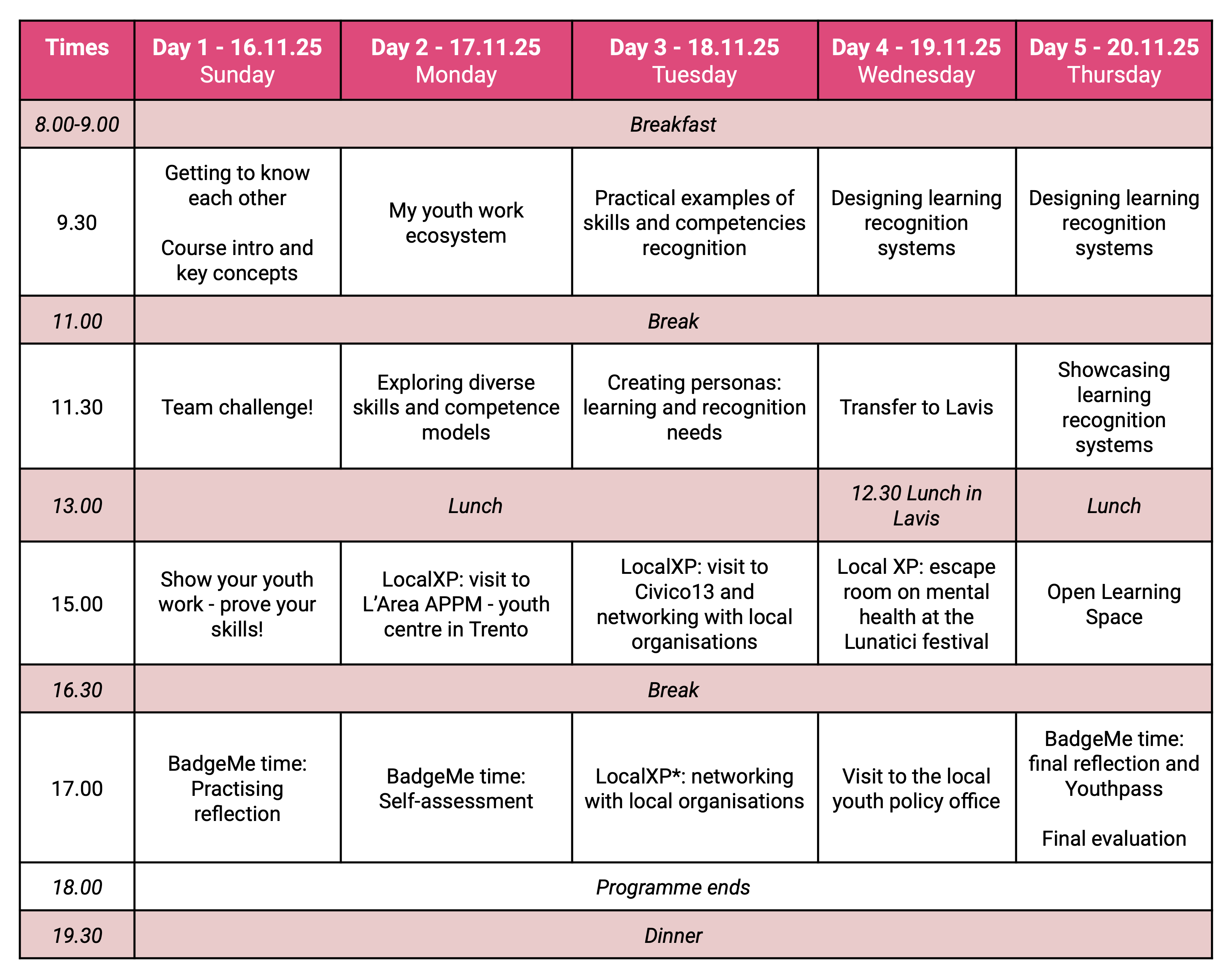 - To learn how to design learning recognition systems for youth work activities and programmes.